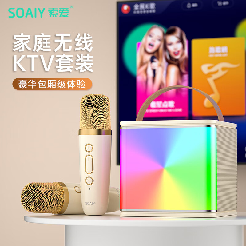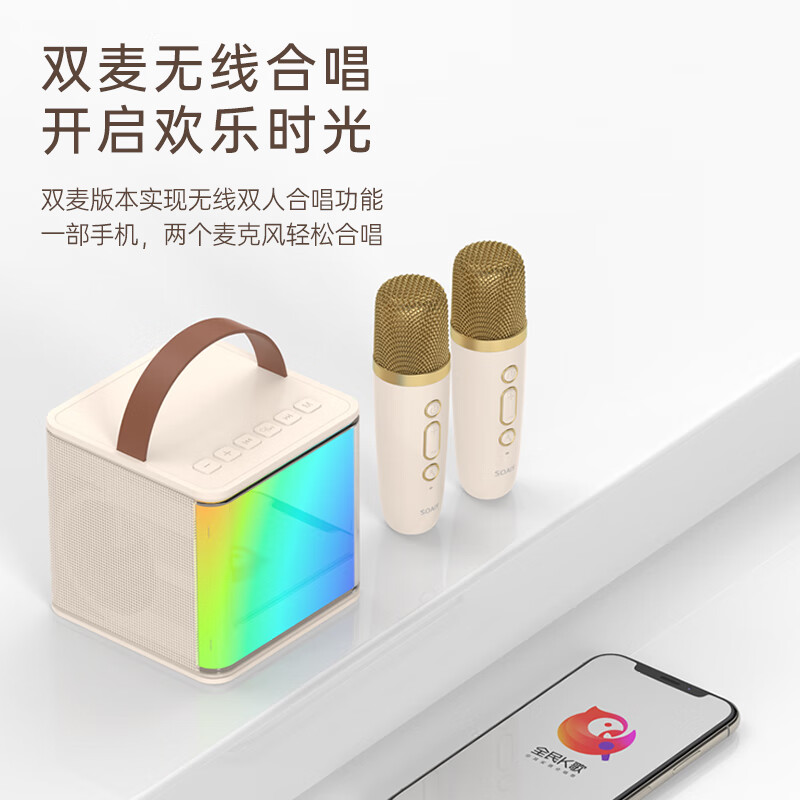 索爱(soaiy)SK5话筒音响一体麦克风三喇叭家用无线蓝牙唱k歌儿童家用卡拉OKktv套装油彩白【双话筒】价格:179.00元!