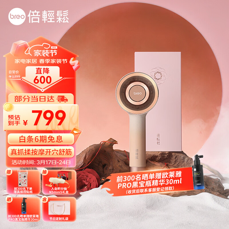 倍轻松(breo)Scalp3头皮智能按摩梳【定制礼盒】 红光护发滋养头皮头部按摩仪器防水 送父母男女友生日节日礼物价格:879.00元!