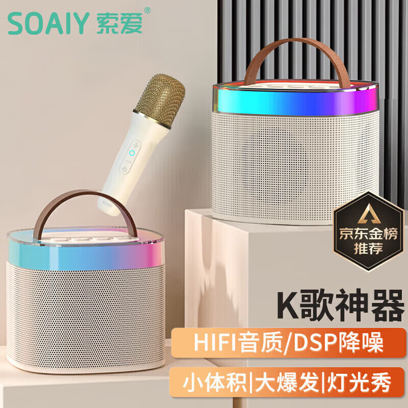 索爱(soaiy)麦克风音响一体带话筒k歌家庭KTV自带声卡蓝牙音箱神器无线唱歌家用卡拉ok SK2单麦油彩白价格:158.00元!