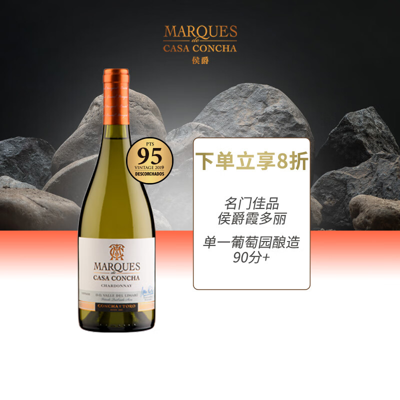 Concha y Toro干露侯爵特酿霞多丽干白葡萄酒750ml单支 智利进口红酒 送礼佳品价格:299.00元!