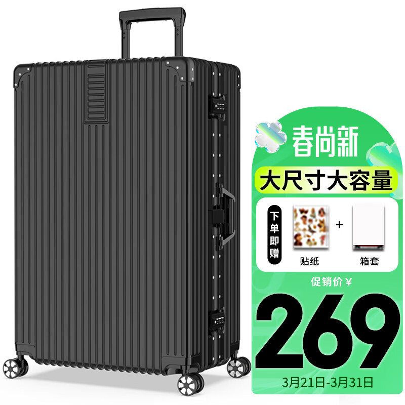 SOO行李箱男铝框商务拉杆箱大容量旅行箱密码箱女皮箱子 28英寸黑色价格:289.00元!