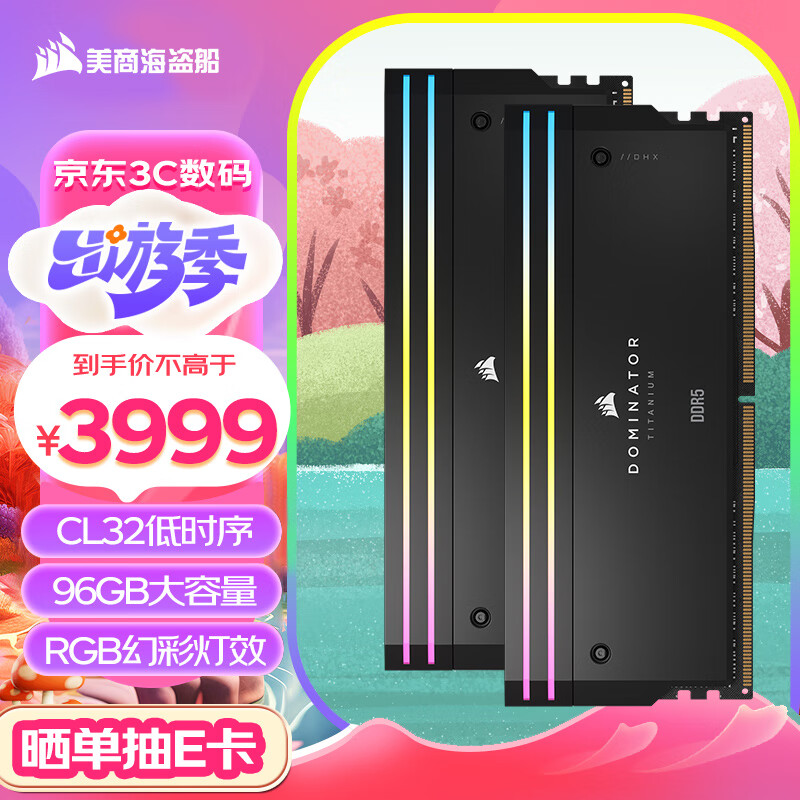 美商海盗船 (USCORSAIR) 96GB(48Gx2)套装 DDR5 6600 台式机内存条 统治者泰坦 RGB灯条 黑色 C32价格:3999.00元!