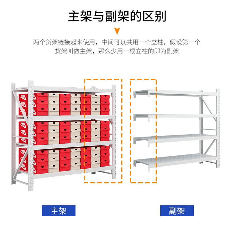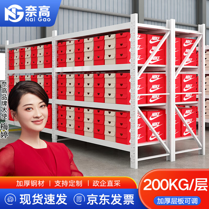 奈高货架仓储仓库组合置物架中型库房多功能展示架铁架子1500*500*2000白色主架价格:489.00元!