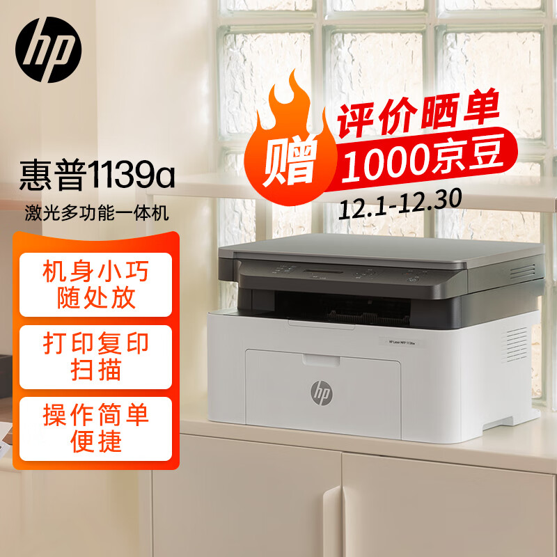 惠普(HP)1139a黑白激光打印机多功能家用办公打印机 复印扫描 商用办公(136系列升级版)价格:899.00元!