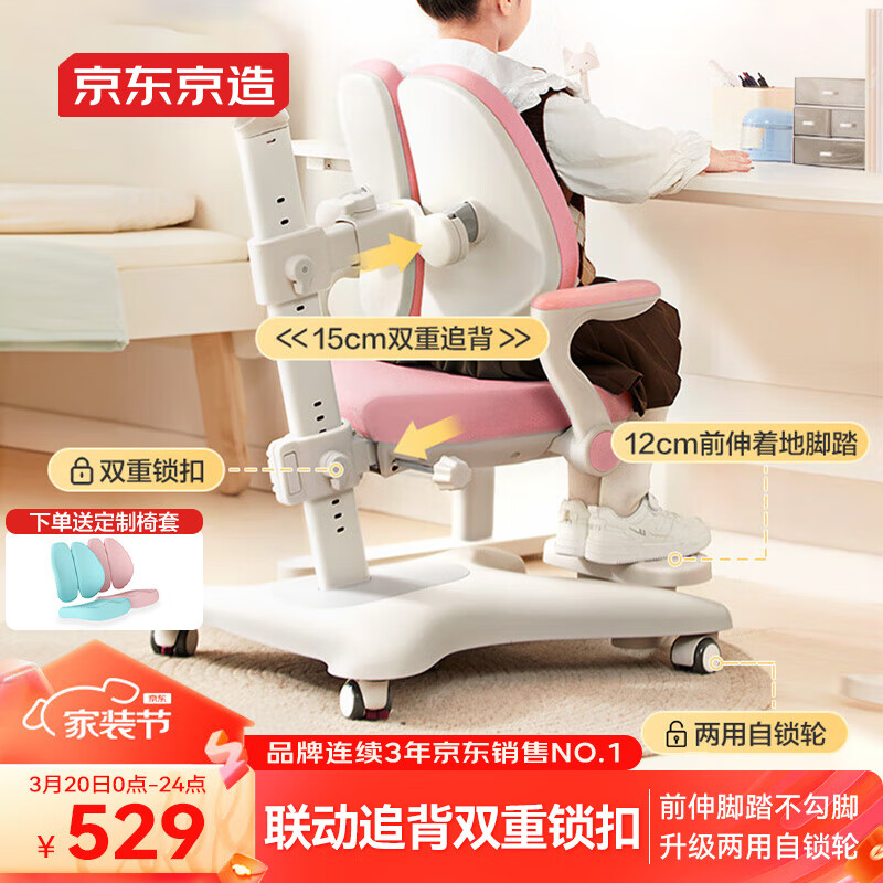 京东京造儿童学习椅子 写字椅【联动追背 前伸脚踏 天然乳胶】粉pro价格:679.00元!
