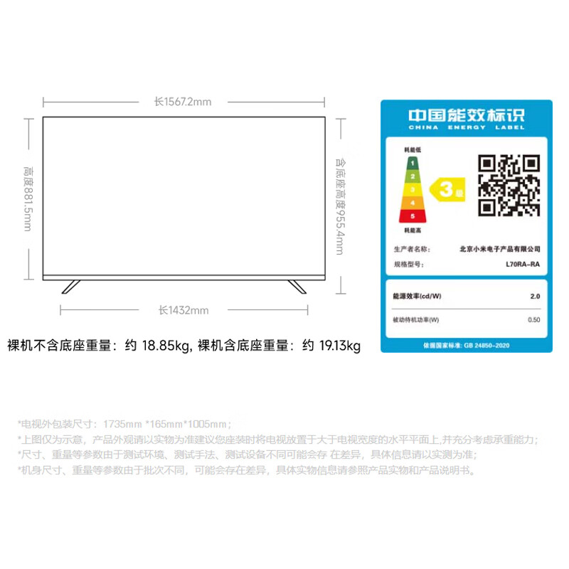 我今天要给大家带来的是小米L70RA-RA外观我比较的喜欢,质量特别的好,外观好看外形外观:好看运行速度:很快屏幕音效:很有感觉家庭聚会也很合适尺寸大小:刚刚好大气朋友推荐的功能效果:试看效果非常好即送即装:速度特别快隔日达且送货哦上门师傅辛苦了