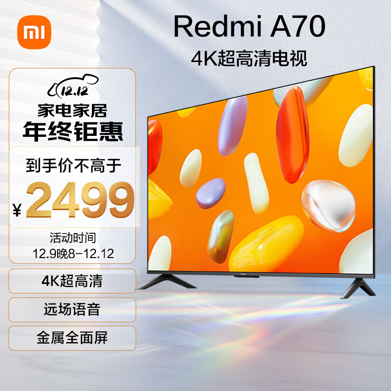 小米电视 Redmi 智能电视 A70 70英寸 2024款 4K超高清远场语音 金属屏 液晶护眼平板电视L70RA-RA价格:2474.00元!