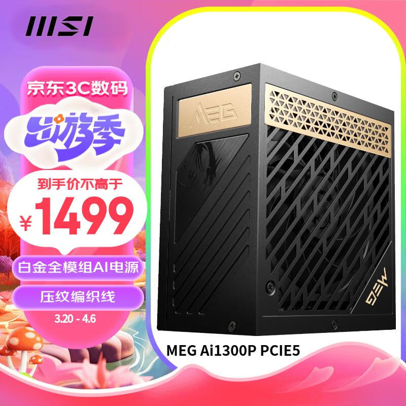 微星(MSI)额定1300W白金全模组AI电源ATX3.0/原生16PIN/原生PCIE5.0/十年保障/全日系电容/数字电路/压纹线价格:1499.00元!