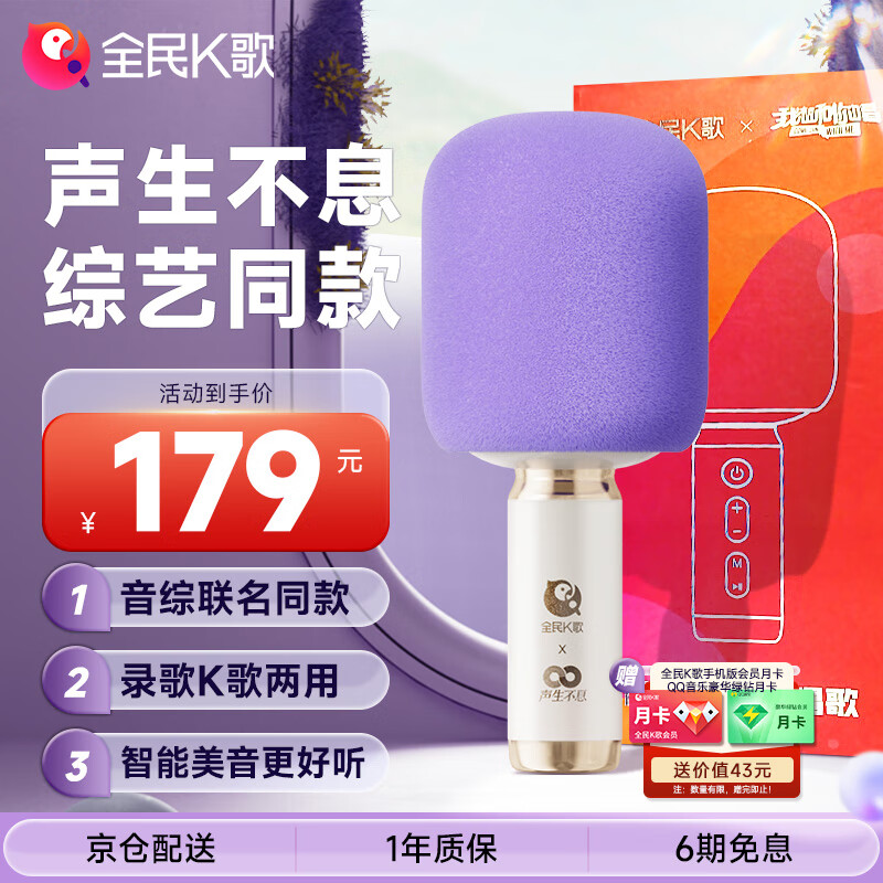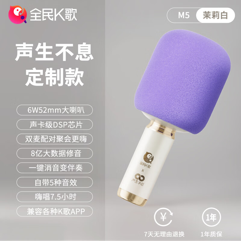 K歌无线麦克风 M5声生不息系列 明星同款 蓝牙音响手机K歌宝直播录音话筒家庭派对娱乐KTV茉莉白紫价格:179.00元!