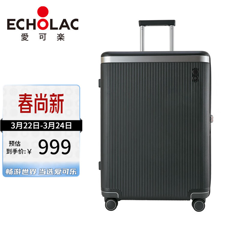 爱可乐(Echolac)明星同款 大容量行李箱拉杆箱万向轮旅行箱王朝PC142深灰色20吋价格:1179.00元!