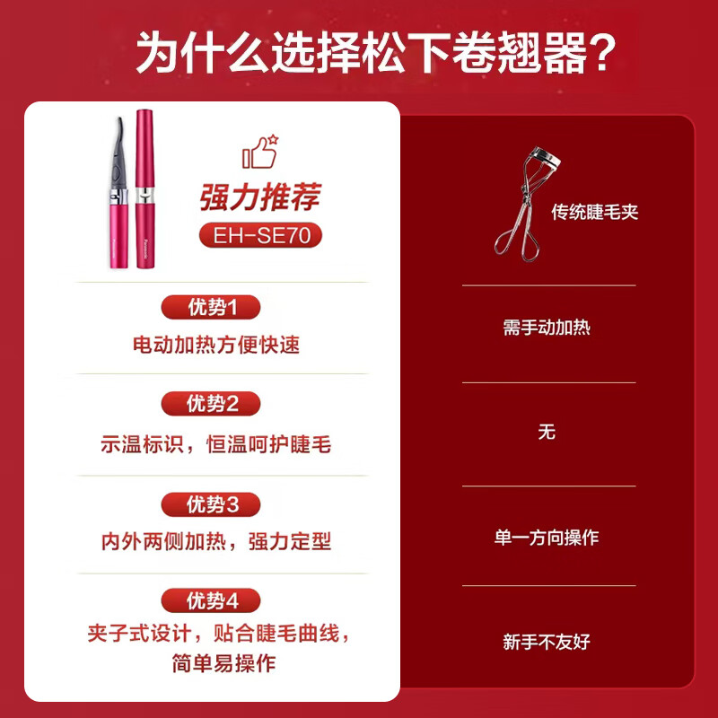 松下(Panasonic)电动睫毛夹 睫毛卷翘器 睫毛烫卷器 送女友新年礼物自用 迷你便携美妆工具持久定型SE70价格:179.00元!