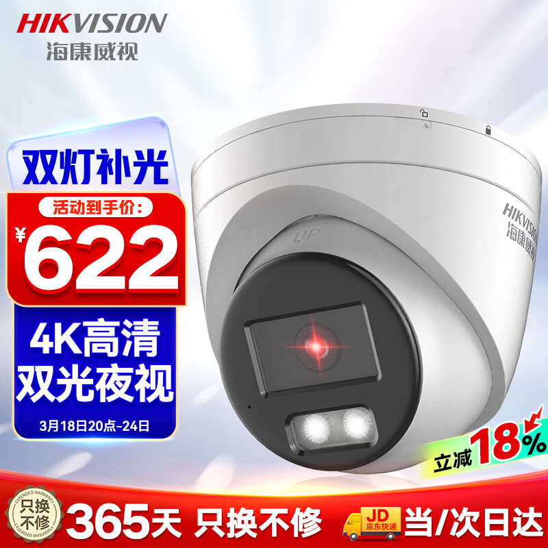 HIKVISION海康威视摄像头监控800万超高清星光夜视室内室外手机远程摄像机可插卡3386FWDV2-IS2.8mm价格:716.00元!