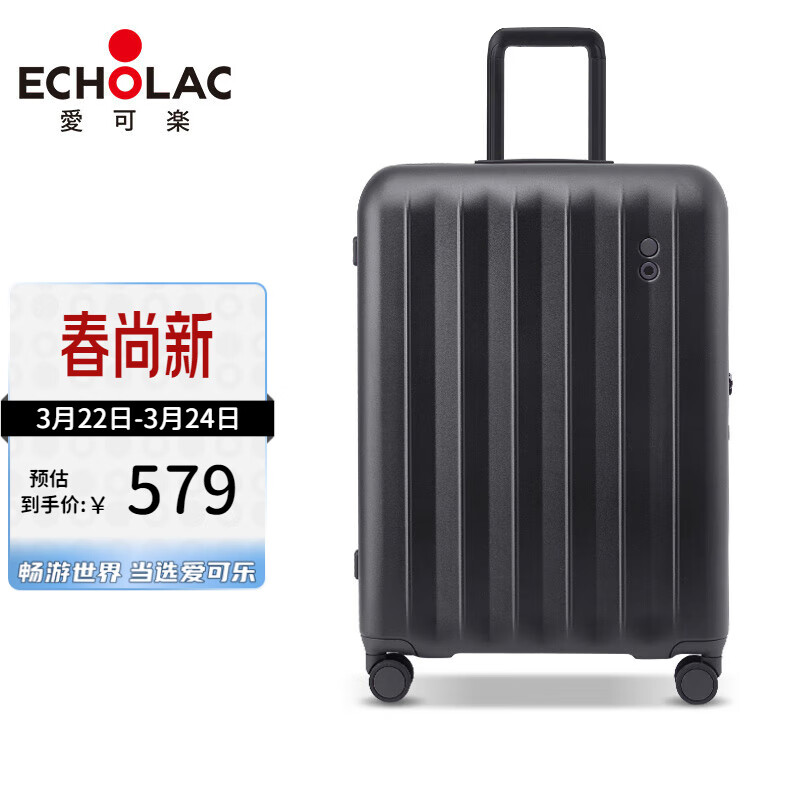 爱可乐(Echolac)万向轮行李箱旅行箱密码箱防刮旅游扩容箱登机箱 PC232 黑色20吋价格:699.00元!