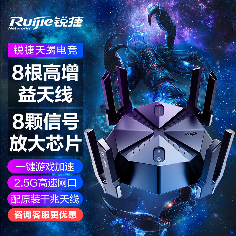 锐捷(Ruijie)星耀天蝎电竞路由器X60PRO 无线千兆WiFi6 穿墙王ax6000 5G游戏加速 6000M 2.5G网口价格:599.00元!