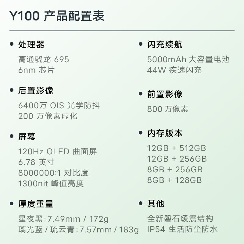 vivoY100配置参数: