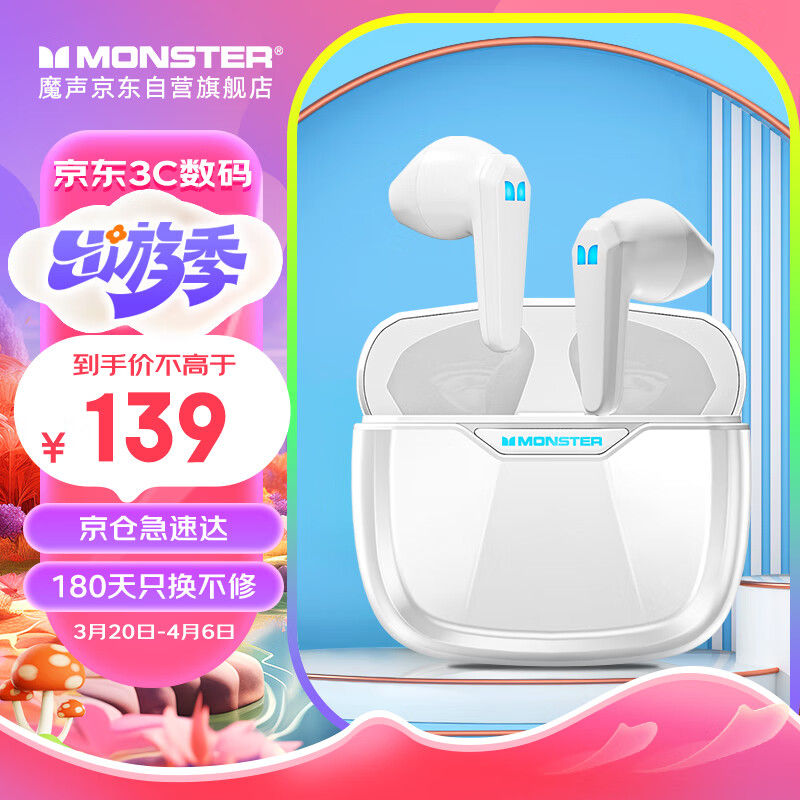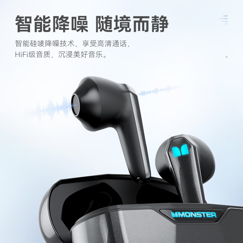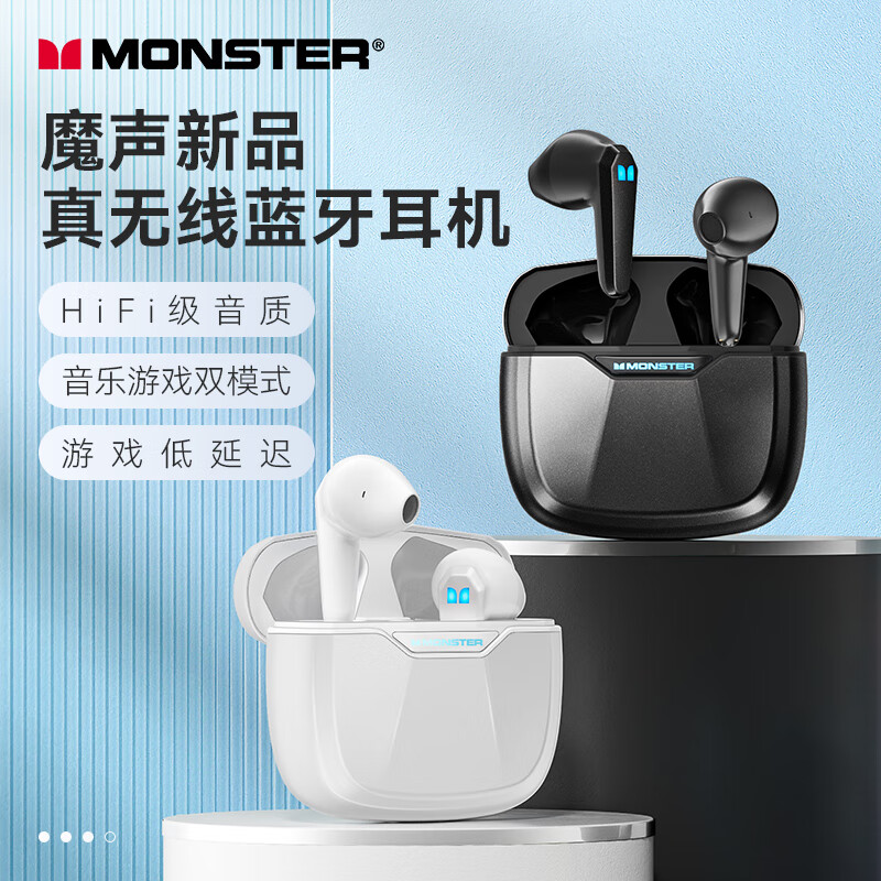 魔声 (Monster)GT11 pro真无线蓝牙耳机降噪运动半入耳式游戏音乐耳机适用华为苹果小米长续航 白色价格:169.00元!