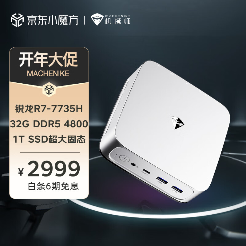 机械师(MACHENIKE)创物者Mini AMD高性能商务电脑台式迷你口袋主机(锐龙R7-7735H 32G DDR5 1TSSD WIFI6)价格:2999.00元!