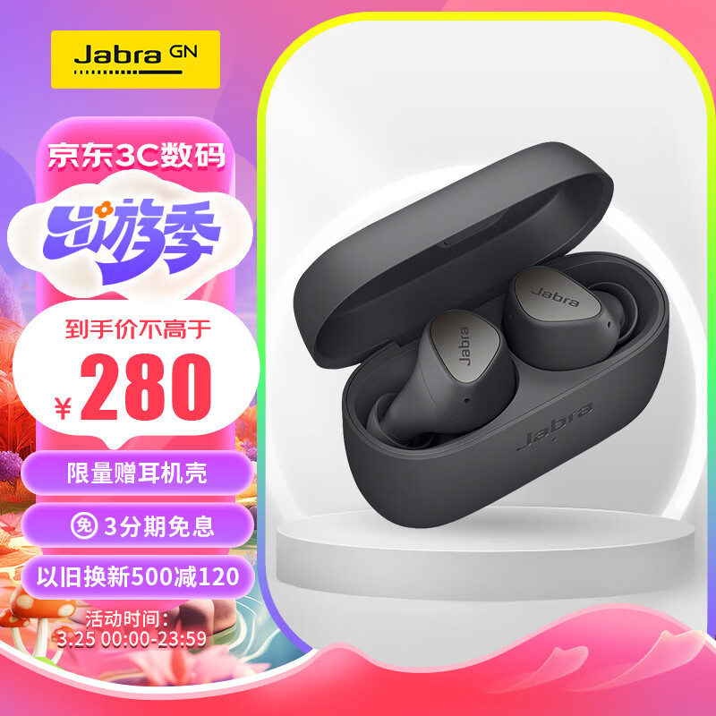 捷波朗(Jabra)Elite3 真无线蓝牙降噪耳机 蓝牙5.2 强劲续航(65t升级版E3) 安卓苹果音乐耳机 深岩灰色价格:319.00元!