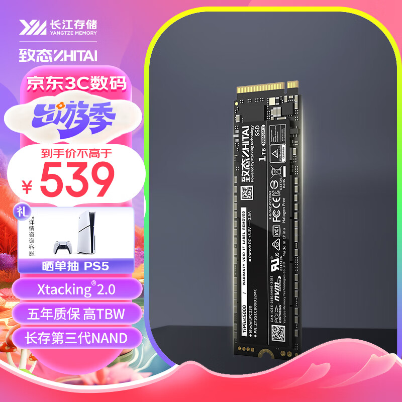 致态(ZhiTai)长江存储 1TB SSD固态硬盘 NVMe M.2接口 TiPlus5000系列价格:539.00元!