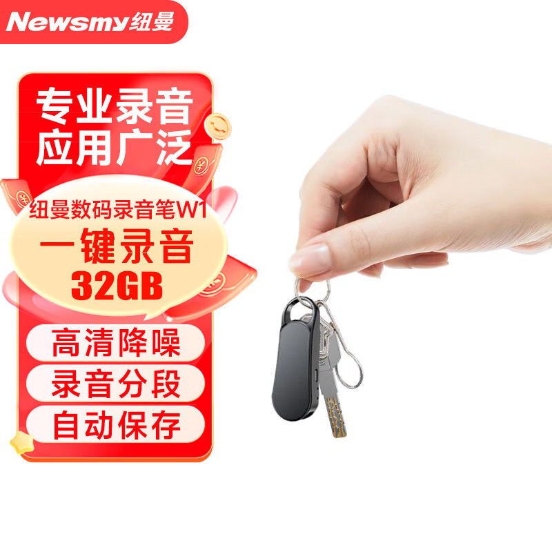 纽曼数码录音笔 W1 32G 一键录音 大电量 高清降噪 录音分段 线控操作 学习培训商务会议 黑价格:188.00元!