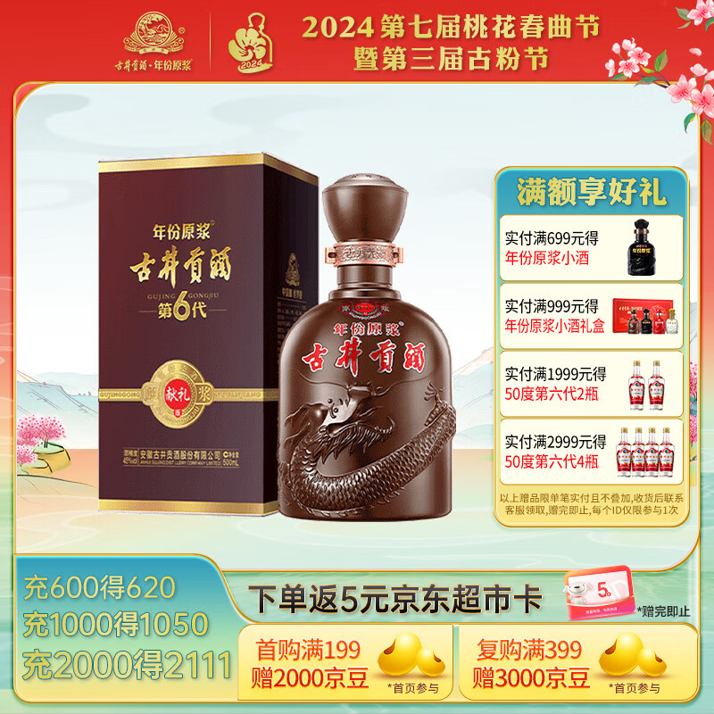 古井贡酒 年份原浆献礼版 浓香型白酒 45度500ml*1瓶价格:110.50元!