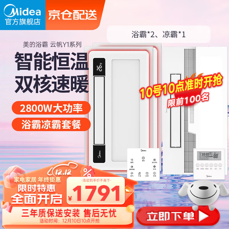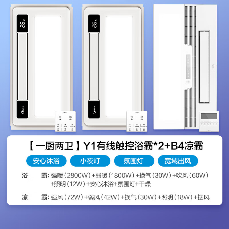 美的(Midea)浴霸风暖浴室取暖器集成吊顶排气扇照明一体双电机卫生间灯暖风机价格:1840.00元!