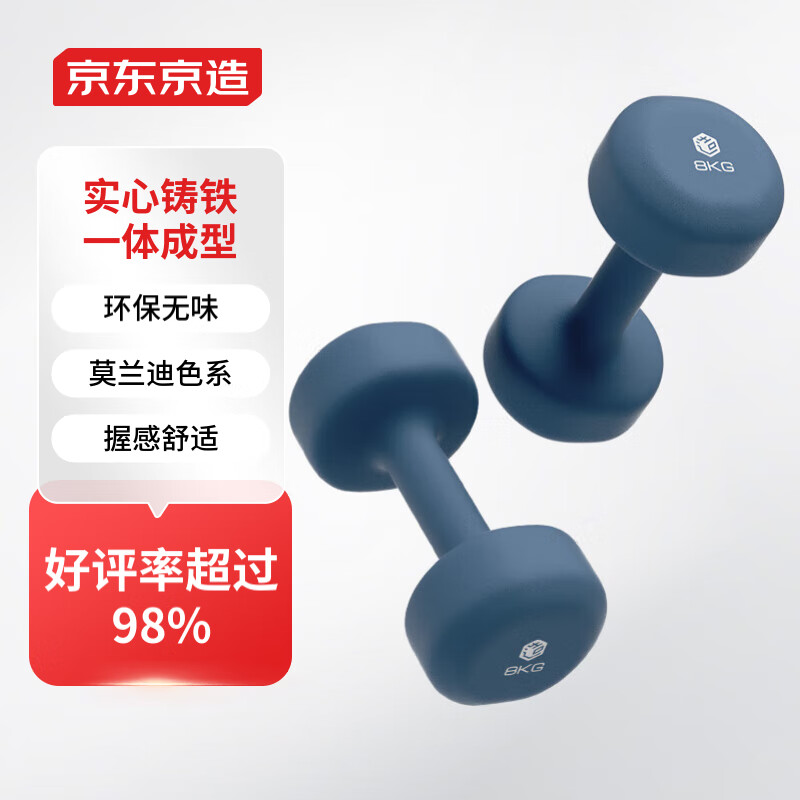 京东京造哑铃 男士女士家用哑铃 彩色浸塑纯铁健身器材 8KG两只装价格:209.00元!