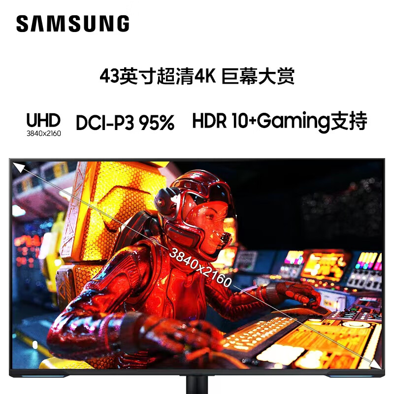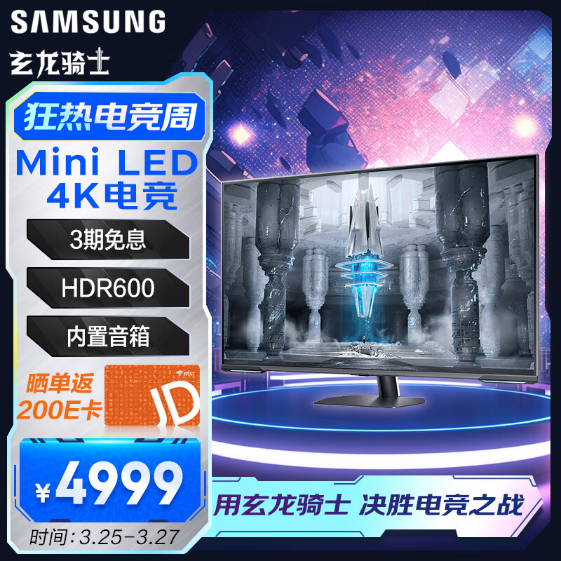三星(SAMSUNG)43英寸 MiniLED 144Hz 4K HDR600 Tizen 内置音箱 G70NC 玄龙骑士 电竞 显示器 LS43CG700NCXXF价格:5799.00元!