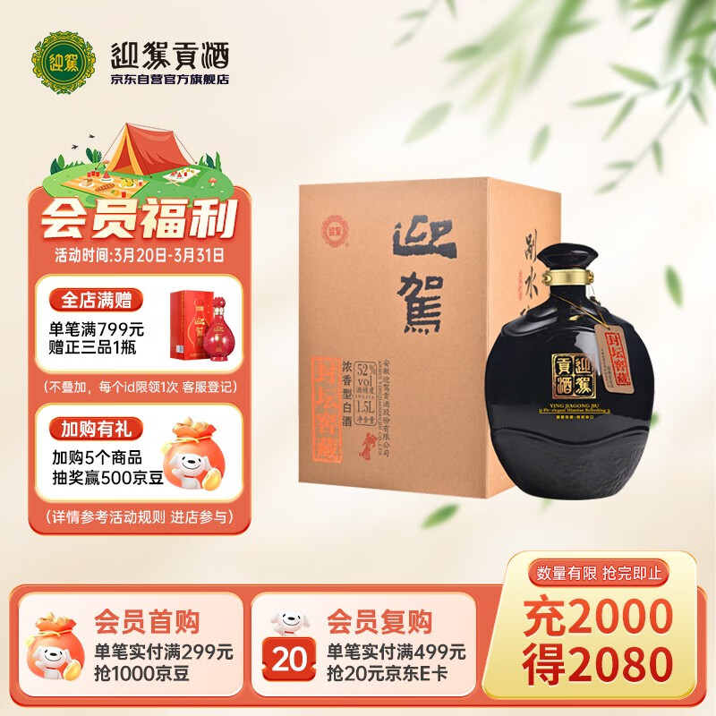 迎驾贡酒 封坛窖藏 浓香型白酒 52度1.5L 大坛装 纯粮酿造送礼白酒价格:220.00元!