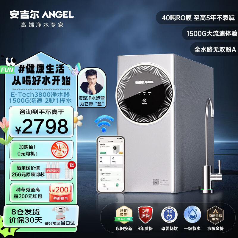 安吉尔净水器家用1500G流速体验 3.8升/分钟大流量直饮净水机E-Tech3800专利RO反渗透纯水机J3477-ROC180 2024力荐【升级1500G流速体验】价格:2798.00元!