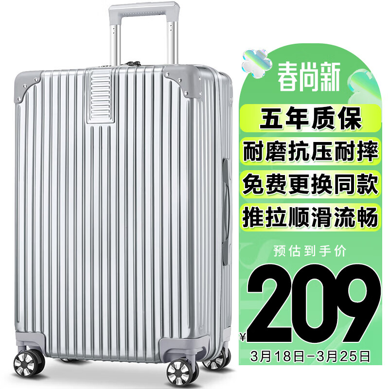 梵地亚行李箱男28英寸万向轮拉杆箱女大容量旅行箱密码箱皮箱子银价格:209.00元!