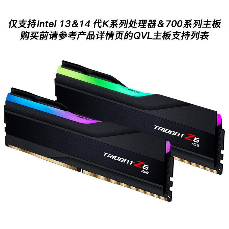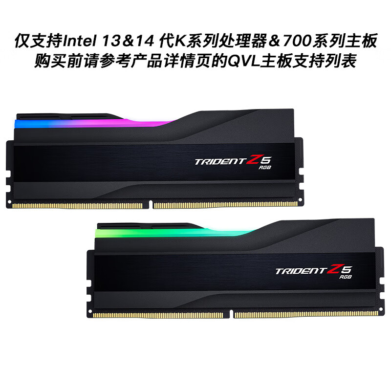芝奇(G.SKILL)48GB(24Gx2) DDR5 7200 台式机内存条-幻锋戟RGB灯条(黯夜黑)/Intel XMP/C36价格:1899.00元!