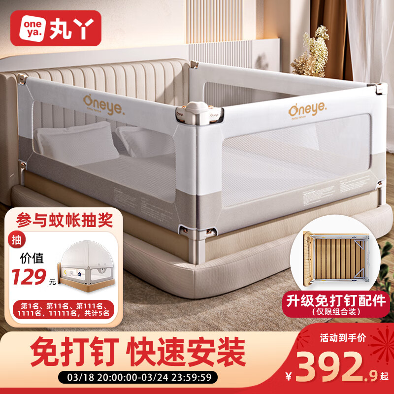 丸丫婴儿床围栏宝宝防摔防护栏床边防掉档板1.8+2.0+2.0免打孔三面装价格:495.90元!
