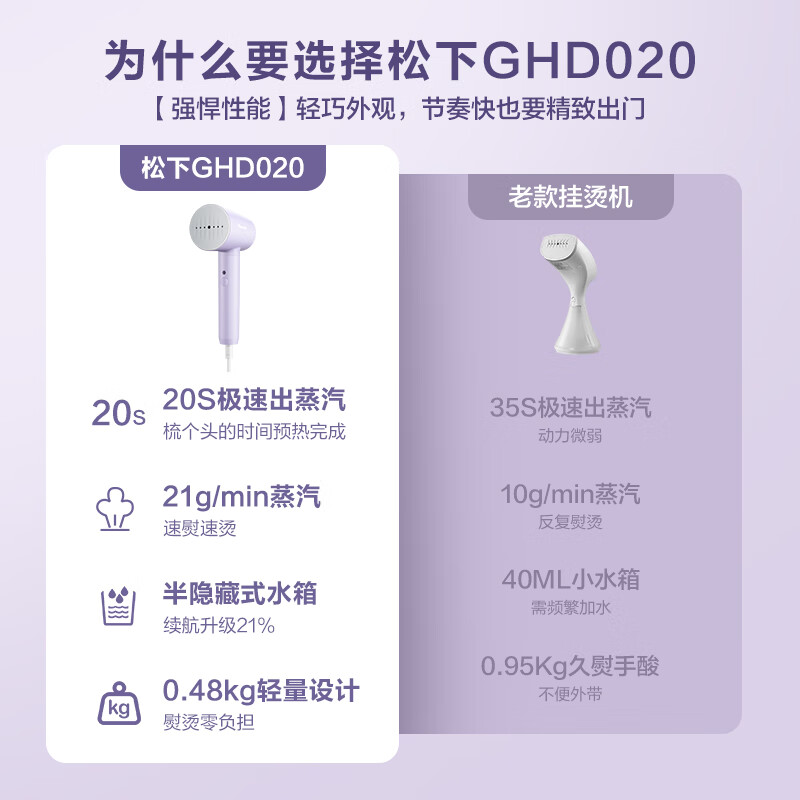 松下手持小型挂烫机家用熨烫挂熨一体大蒸汽旅行出差便捷式礼物团购NI-GHD020-W珍珠白价格:179.00元!