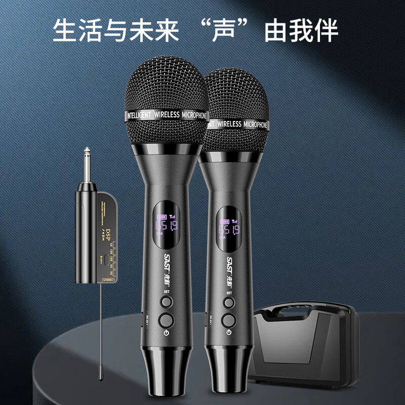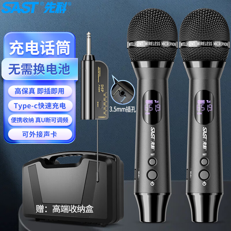 先科OK-113可充电无线麦克风U段家庭唱歌舞台主持演讲K歌会议音箱音响功放调频一拖二金属话筒带便携箱价格:709.00元!