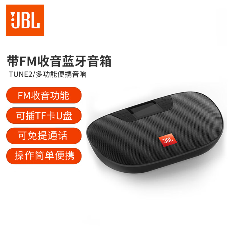 JBL TUNE2 多功能插卡蓝牙音箱 便携式户外音响 FM收音机 U盘TF卡学生学习老人娱乐 黑色价格:599.00元!