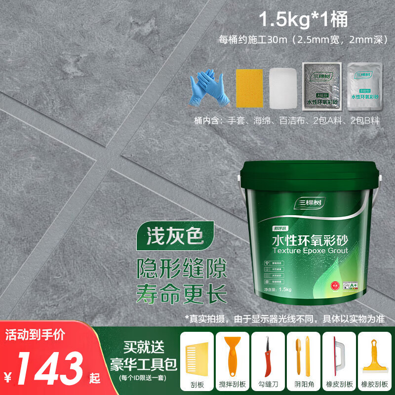 三棵树漆(SKSHU)水性环氧彩砂桶装美缝剂耐磨耐水客厅厨卫地砖瓷砖胶 浅灰色价格:143.00元!