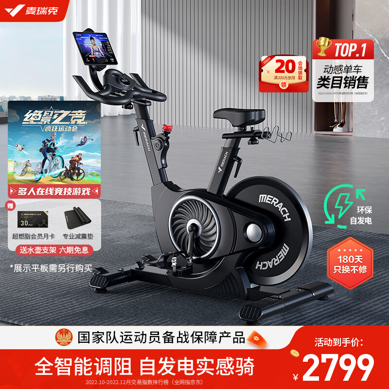 麦瑞克(MERACH)动感单车健身房级家用自发电磁控器材室内自行车黑曜骑士MR-S12B3价格:2799.00元!