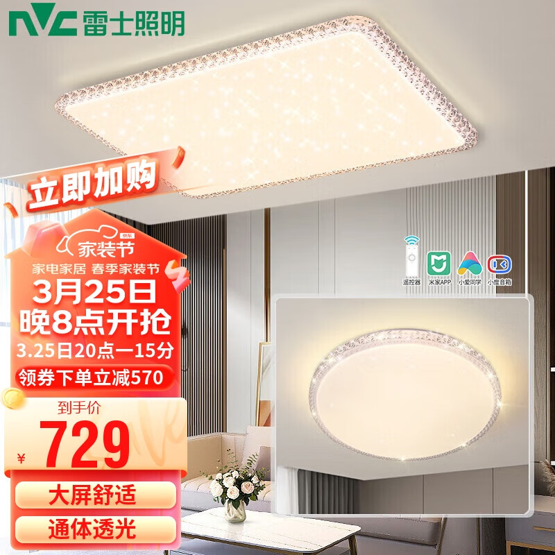 雷士照明(NVC)现代简约满天星璀璨光效轻奢灯饰灯具【碧玉】满天星一室一厅价格:1299.00元!