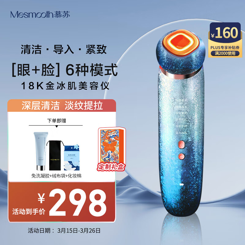 MESMOOTH慕苏美容仪脸部眼部按摩仪提拉紧致家用清洁去黑头导出导入仪光子嫩肤礼物送女友 星湖蓝Pro价格:298.00元!