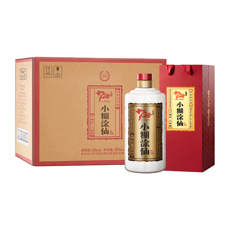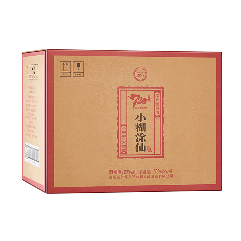 小糊涂仙 20周年720金装版(裸瓶装)浓香型白酒52度500ml*6瓶 整箱装 贵州价格:1219.00元!