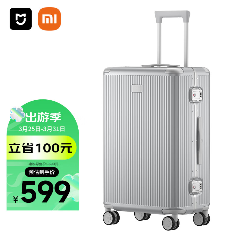 米家小米行李箱男铝框商务拉杆箱24英寸大容量旅行箱女密码箱子银色价格:649.00元!