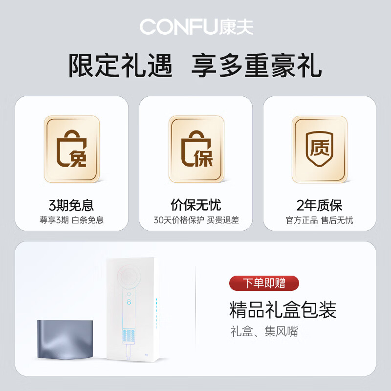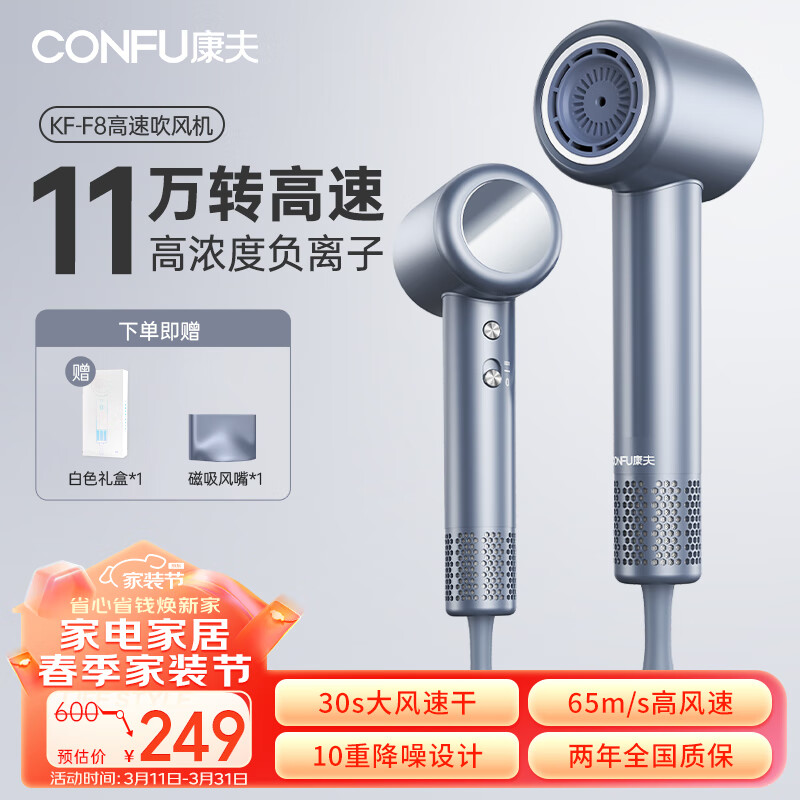 康夫(CONFU)11万转高速电吹风机家用速干大风力负离子护发送女友生日礼物吹风筒 KF-F8银价格:389.00元!
