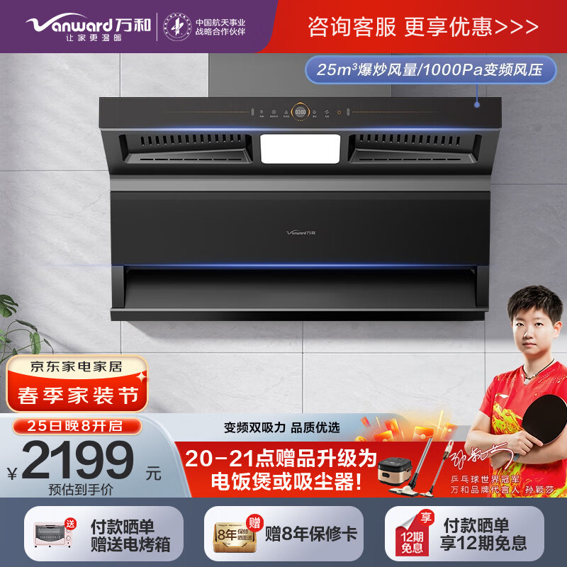万和(Vanward)顶侧双吸油烟机 三腔直流变频抽油烟机 25m3/min大吸力 1000Pa风压 家用自清洗油烟机 WL860价格:2499.00元!