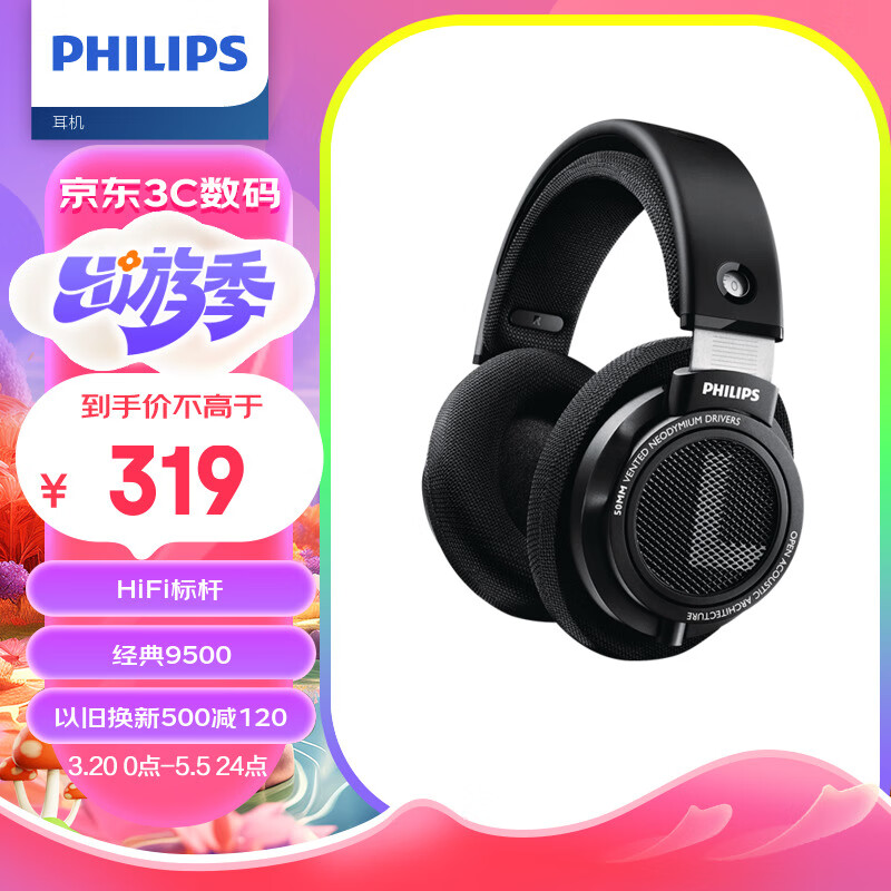 飞利浦(PHILIPS)头戴式耳机有线耳机hifi耳机监听耳机电竞游戏耳机SHP9500价格:319.00元!