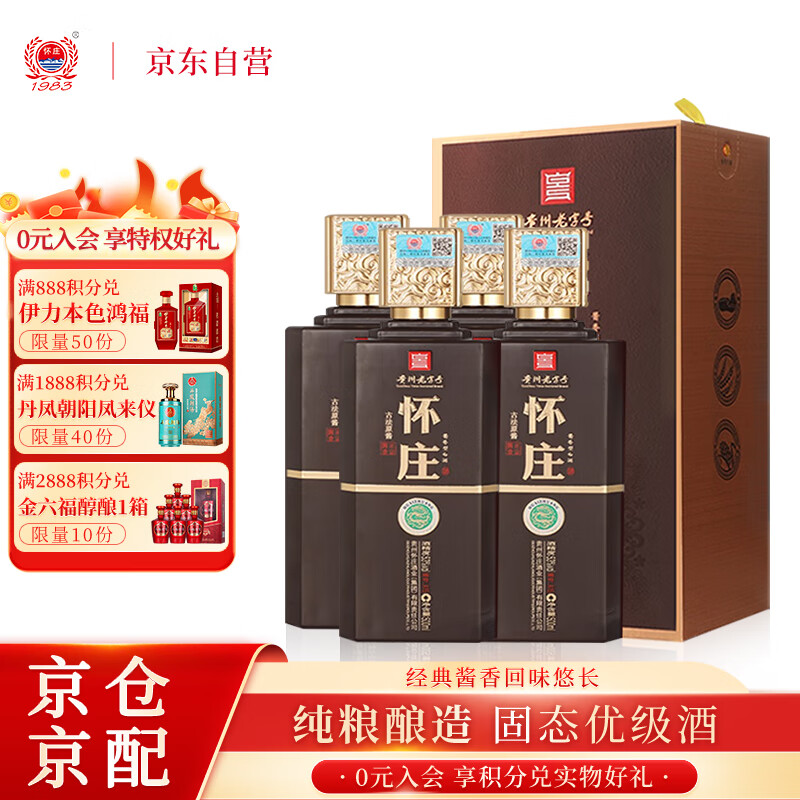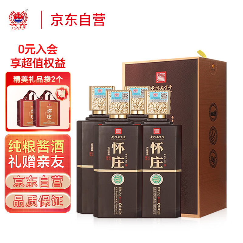 怀庄 古法原酱A15 53度酱香型白酒500ml*4瓶年货整箱装 含礼品袋价格:458.00元!