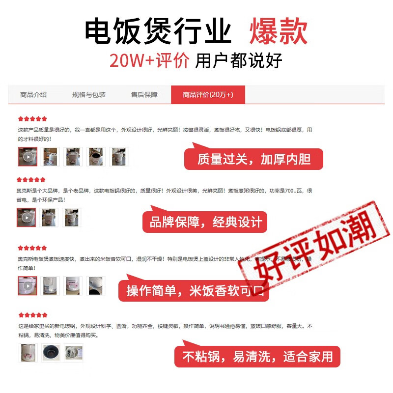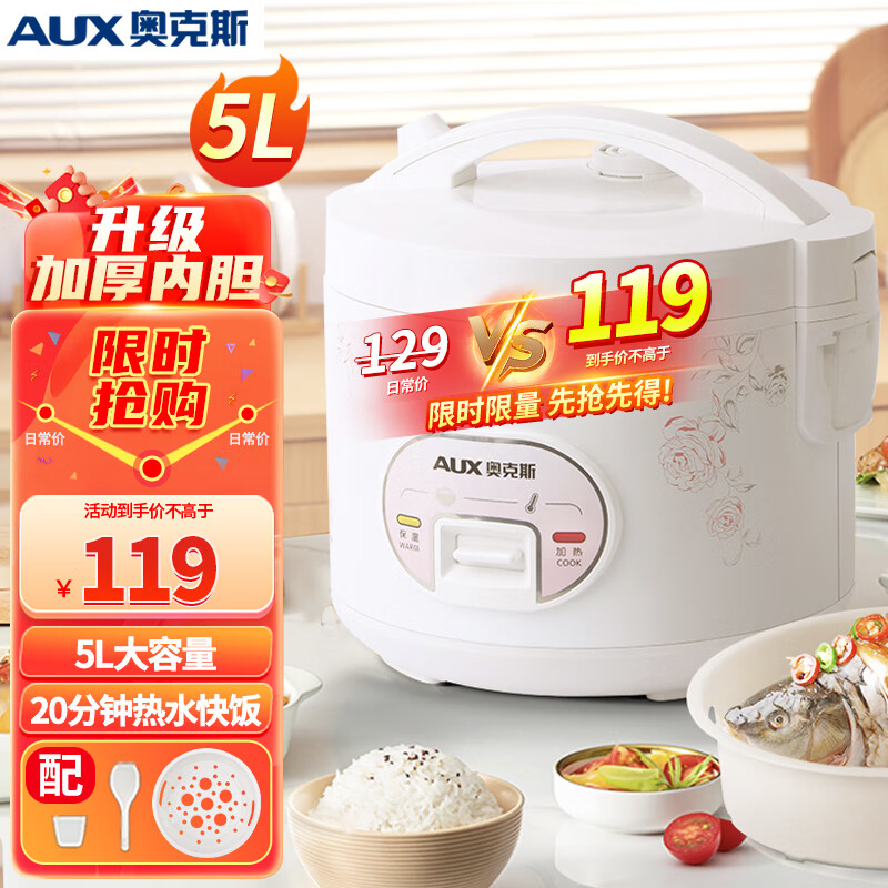 奥克斯(AUX)电饭煲 电饭锅 5L家用简易操作老式西施煲 小型电饭锅 5-8个人 VK-501X8价格:119.00元!