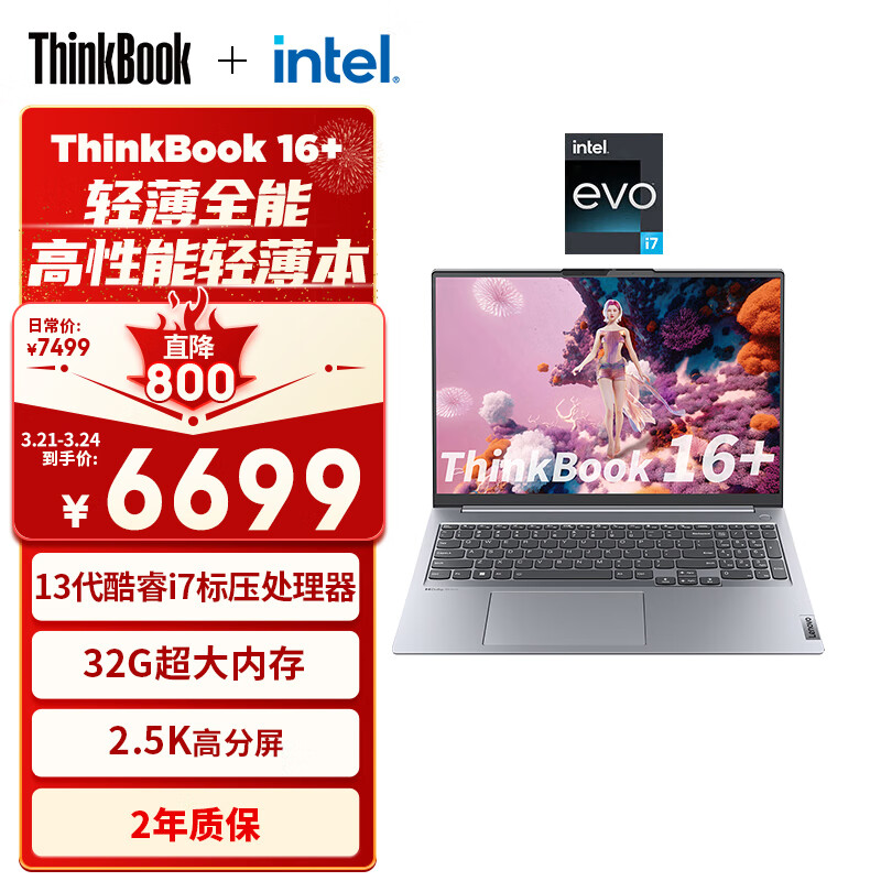 ThinkPad联想笔记本电脑ThinkBook 16+ 英特尔Evo 16英寸标压便携轻薄办公本 13代i7-13700H 32G 512G 2.5K价格:6699.00元!