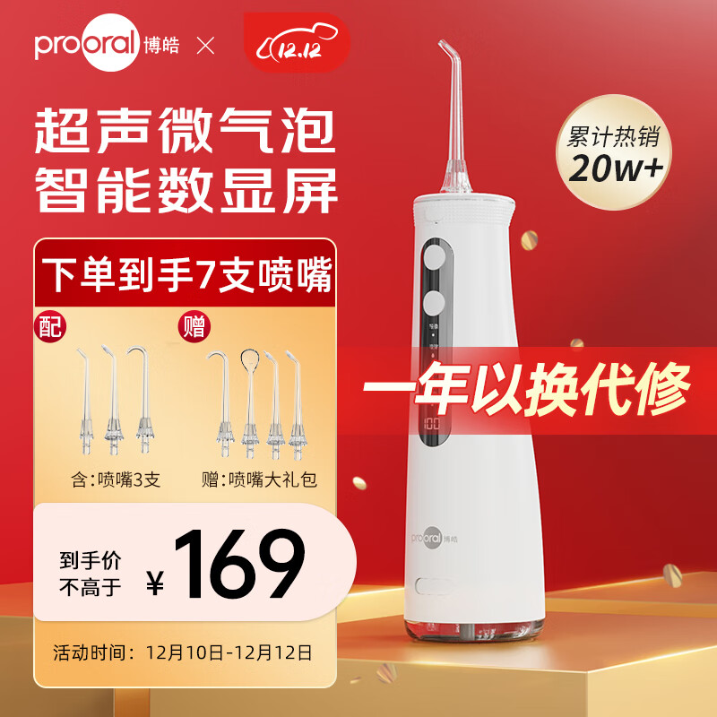 博皓(prooral)冲牙器/洗牙器/水牙线/洁牙器 立式设计 5025pro(原5002升级版)瓷白价格:179.00元!