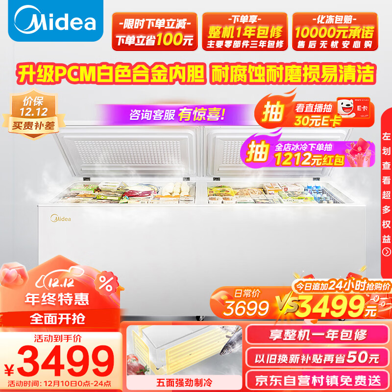 美的(Midea)719升 双顶开商用囤货大冰柜 五面制冷冷冻冷藏转换冷柜 卧式冰箱 BD/BC-719DKM(E) 以旧换新价格:3599.00元!